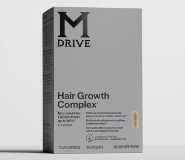 M Drive Hair Growth Complex fights thinning hair by tackling nutrient gaps, hormone imbalances, and poor scalp health. Actrisave helps keep more hair in the growth phase, increasing fullness by up to 85.8% in 6 months. AnaGain Nu, biotin, and collagen strengthen hair from the root, while saw palmetto, horsetail, zinc, and selenium support scalp health. This powerful formula promotes growth, reduces shedding, and strengthens hair for a fuller, healthier look.*